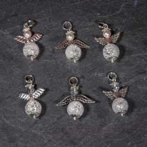 Es gibt dieses Engeli mit 3 verschiedenen Flügeln und 2 verschiedenen Köpfchen zur Auswahl. Es gibt dieses Engeli wahlweise mit Swarovski- Kristall oder Swarovski- Glaswachs- Perle. Ich verwende keine echten Perlen, da für jede Perle eine Muschel sterben müsste und das möchte ich nicht.