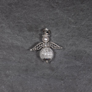 Dieses wunderschöne Engeli ist 925 Silber und aus Iris-Bergkristall gefertigt. Der irisierende Effekt wird erzielt indem die Bergkristallperlen eingefroren und wieder aufgetaucht werden. Dadurch entstehen ganz viele kleine Risse im Inneren des Steines, die das Licht wunderschön, manchmal sogar in Regenbogenfarben brechen. Diese zauberhaften Perlen sind besonders schön anzuschauen und auch etwas empfindlich, daher bitte besonders achtsam behandeln. Es kann sein dass die Perlen durch das Tragen mit der Zeit noch etwas durchsichtiger werden.