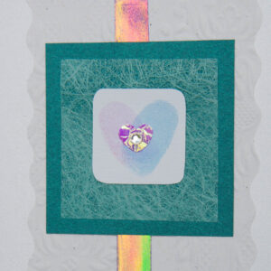 Selbstgebastelte Grusskarte mit schillerndem Herz